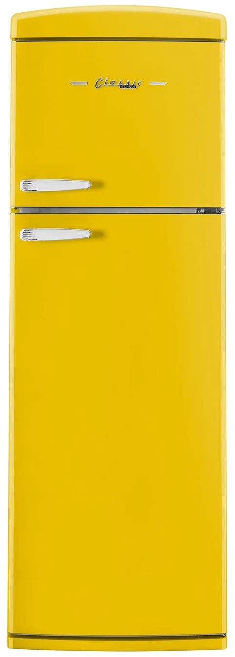 Timeless style meets efficiency in our 11 cu. ft. retro top-mount, Energy Star, frost-free refrigerator. Featuring chrome accents, LED display, adjustable glass shelves, frost-free cooling and Super Freeze Mode, it blends style with performance. Stay organized with a wine rack, ice tray, and humidity control crisper while the digital control panel and door alarm ensure convenience and peace of mind.Read More